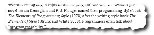 Brian Kernighan and P. J. Plauger named their programming-style book The Elements of Programming Style (1978) after the writing-style book The Elements of Style (Strunk and White 2000).